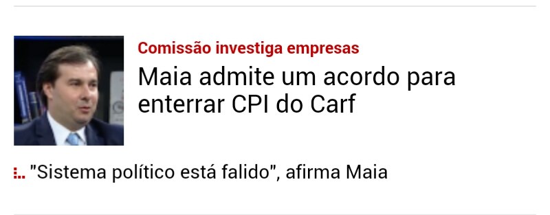 Depois, num declaração que converge perfeitamente com a conspiração para extinguir a CPI, Rodrigo Maia assume o óbvio: “O sistema político está falido”.